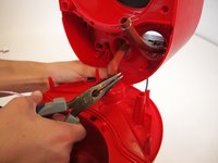 Separate the two halves. Use large needle-nose pliers to untwist the wires that secure the heating tubes. Then use a moderate amount of force to pluck the tubes off the spokes.