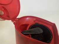 Remove the coffee maker’s lid by rotating it 180 degrees and gently popping it off of the hinge.