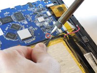 Desolder the red wire connection from the motherboard using the tip of the soldering iron.
