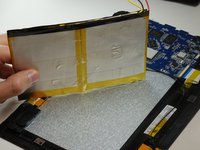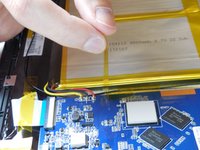 The battery is connected to the tablet with an adhesive tape and will come free slowly.