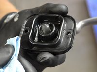 Using a damp rag, wipe down the rim and rubber gasket of the master cylinder and the master cylinder cover.