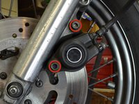 Insert the upper retaining bolt into the upper bolt hole in the fork and brake assembly.