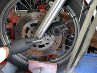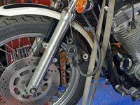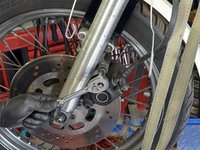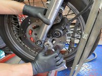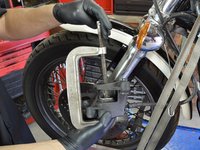 If you do not have a motorcycle lift, you will still be able change the brake pads, but it is still a good idea to secure the front wheel in place.
