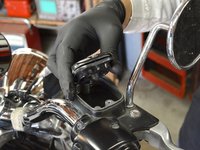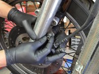 For the best access to the brake pads, we recommend securing the motorcycle in an upright position.