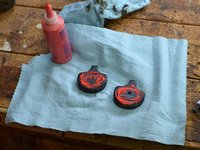 Apply a moderate amount of anti-squeal compound to the back of each new brake pad.