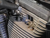 The spark plugs are easy to spot on the left side of the motorcycle.