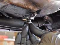 Using a wrench, unscrew the transmission drain plug and remove it.