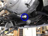 The transmission drain plug is located on the underside of the transmission on the left side of the bike, near the kickstand bumper.