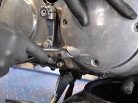 As you pour, watch the clutch inspection hole. Make sure that the oil level stays below the edge of the clutch inspection hole.