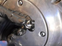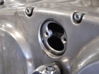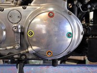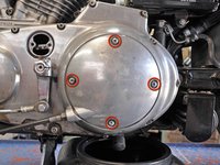Using a 5/32 Hex or Allen screwdriver, unscrew the two screws from the primary chain inspection cover.