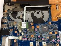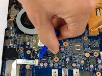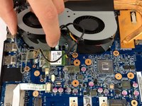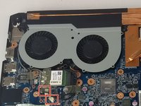 To take out the Graphics card fan it is necessary to disconnect the two Graphic card fan cables. Use a plastic opening tool to remove the cable.