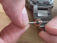 Continuing to apply constant tension, remove the spring bar from its retaining hole in the watch case on the other side. This will release the bracelet from the case, allowing us to access the links we need to add or remove more easily.