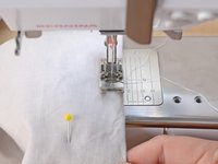 Place the first cuff on the sewing machine, and position the sewing needle between one of your pins and the edge of the cuff.