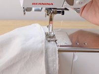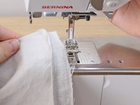 Insert the freshly cut edge of the hem into the sewing machine.