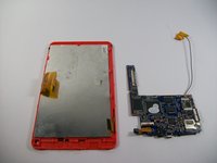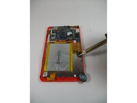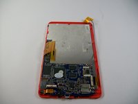 • Now that the battery and speaker are removed, the black clips are undone, and the motherboard is unscrewed, remove the motherboard.