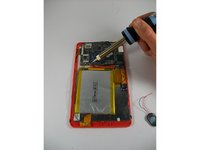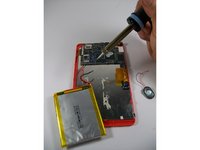 • Use the soldering iron to heat the end of the wires connecting the speaker to the motherboard.