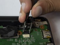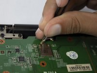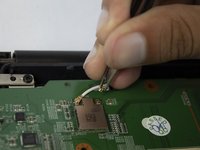 Using the tweezers, carefully remove the latches attaching the silver computer chip.