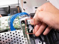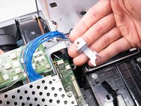 Carefully pinch the edges of the two blue connectors and pull upwards to remove them from the motherboard.