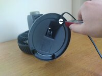 Unscrew the three black screws on the back of the fan head and place the screws aside.