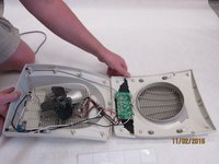 Lift the front housing away from the back of the fan and slowly fold the front housing back down to the floor.