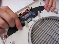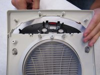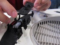 Lift the front housing away from the back of the fan and slowly fold the front housing back down to the floor.