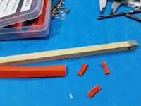 Photo of materials to be used, there are more materials than those used in this design, since I have made 2 variants of the homemade screw-holding tool at the same time, in another document I show the 2nd tool. A 1x1x20 Cm wooden strip has been used, any other similar will work, Neodymium Magnet, and heat shrink tubing.