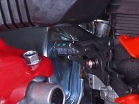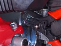 Grab the throttle return spring and push it down to point the tip of the hook downward.