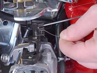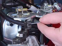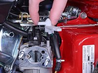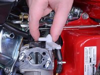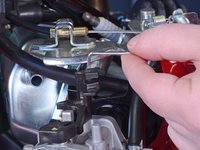 Apply an upward motion to lift the tip of the hook out of its connector on the carburetor.