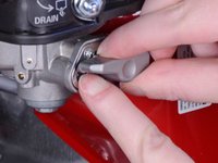 Grab onto the end of the fuel supply hose and pull it straight up to disconnect it from the carburetor.