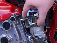 Use a pair of snap ring pliers to loosen the spring hose clamp on the breather tube, pulling it out 2-3 cm so it's not clamping onto the end of the tube.