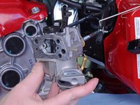 Pull the carburetor halfway out, but do not completely remove it yet.