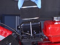 Lift the air filter straight up off the elbow, making sure it clears the threaded rod.
