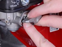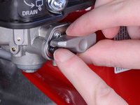 Turn the fuel valve knob counter-clockwise until it faces downward to drain any gasoline that may be remaining in the carburetor.