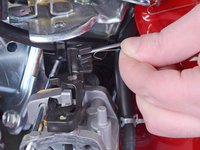 Grab the governor rod and lift it straight up to remove it from the carburetor.