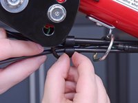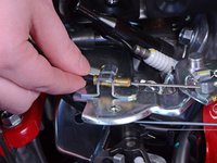 Grab the end of the throttle cable with your fingers and push the cable inwards so that it lines up with the small cutout on the control lever.
