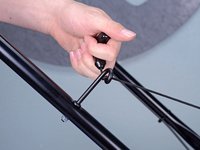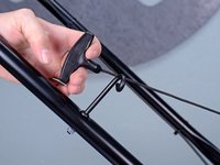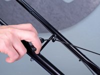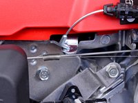 Use needle nose pliers to squeeze the two locking tabs on the brake cable latch.