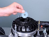 Remove the 19 mm nut securing the flywheel and cooling fan to the motor.