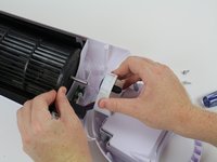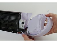 Use a plastic opening tool or screwdriver to pry off the back of the fan, starting from the top down.