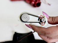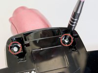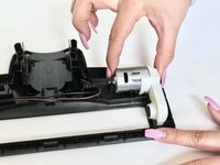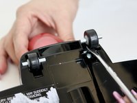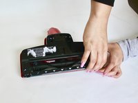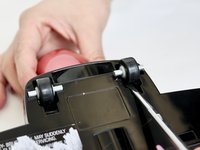 • Locate the two wheels in the upper half of the vacuum head and remove them by sticking the metal spudger tool underneath the wheel and pushing it towards you until it pops out.