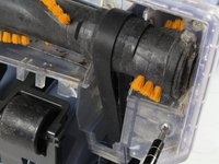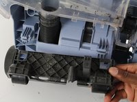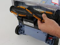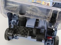 Instructions on how to replace the height adjustment wheels at the bottom of the vacuum.