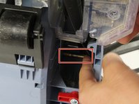 Use a Phillips #1 screwdriver to remove the screws from the right side of the white plastic frame.