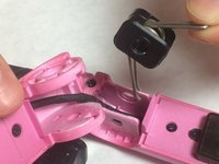 Remove round plastic cover near cord base by prying under the side with the metal spudger.
