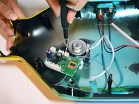 Using a Phillips #0 Screwdriver, remove the 3 screws holding the speaker to the shell.