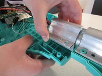 The other side of the bearing has wiring for the LED light running under it, so it cannot be pulled out with your hands. To get leverage, carefully use the metal spudger to wedge out this other side.
