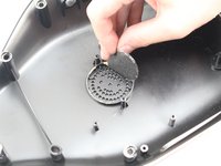 Use a nylon spudger to scrape the fabric speaker cover off the outer shell.