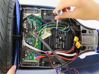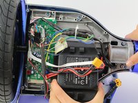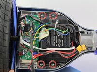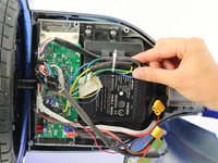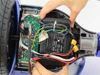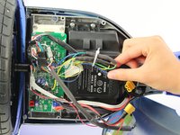 Remove the battery out of the hoverboard by lifting the battery then sliding it out from under the wires.