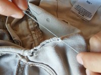 Pull needle and thread through pants until there is only 2 inches of thread left.