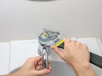 Place a towel in the sink to catch any excess water or faucet hardware.
