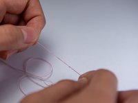 Tie a solid knot around the needle to secure the thread, repeating if necessary.