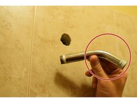 Remove the old shower arm from the wall and completely clear all debris from the hole in the wall.